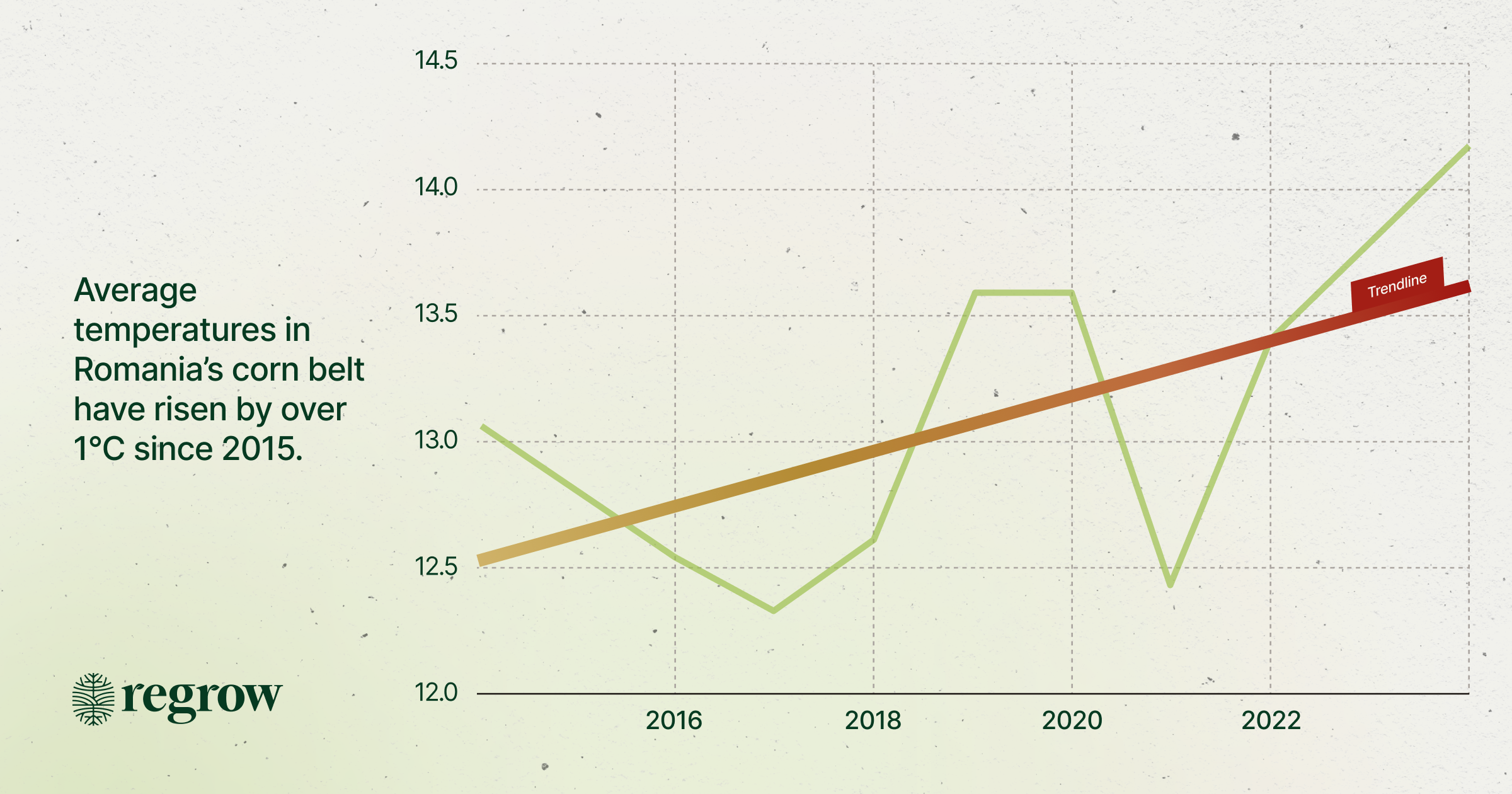 This is more than an aberration. Average temperatures have been increasing in Romania’s corn producing regions over the past decade.