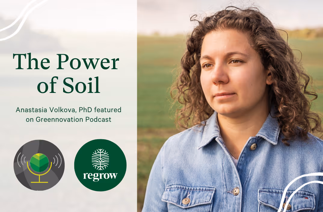 Regrow CEO Anastasia Volkova, PhD, was recently featured in the first episode of Greennovation, a podcast that profiles company founders that are working to combat climate change. Anastasia is one of those founders — today she’s the CEO and Co-Founder of Regrow, a company that makes regenerative and resilient agriculture accessible on a global scale.